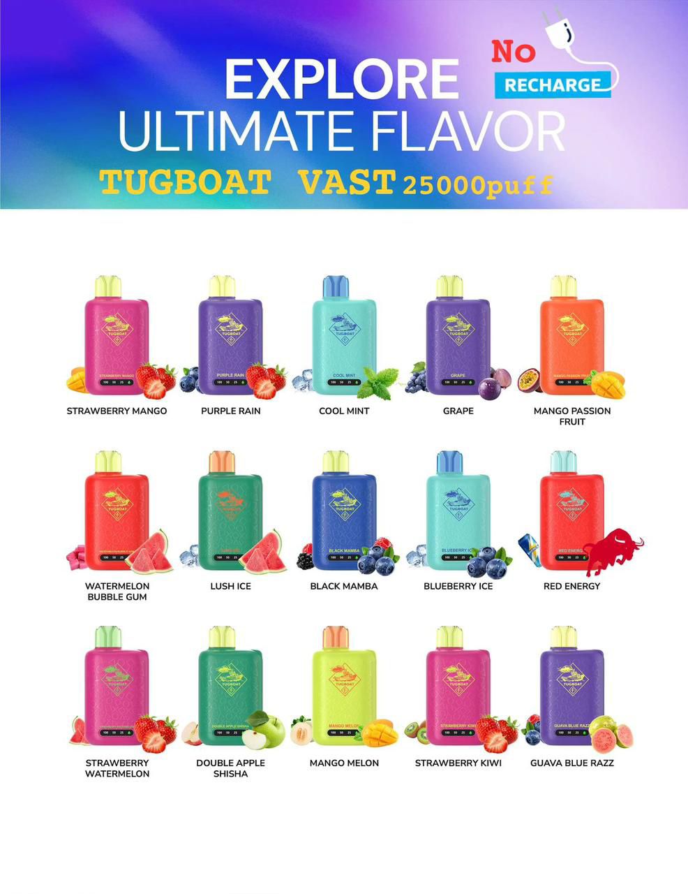 Available Flavors of TUGBOAT VAST 25K Puffs